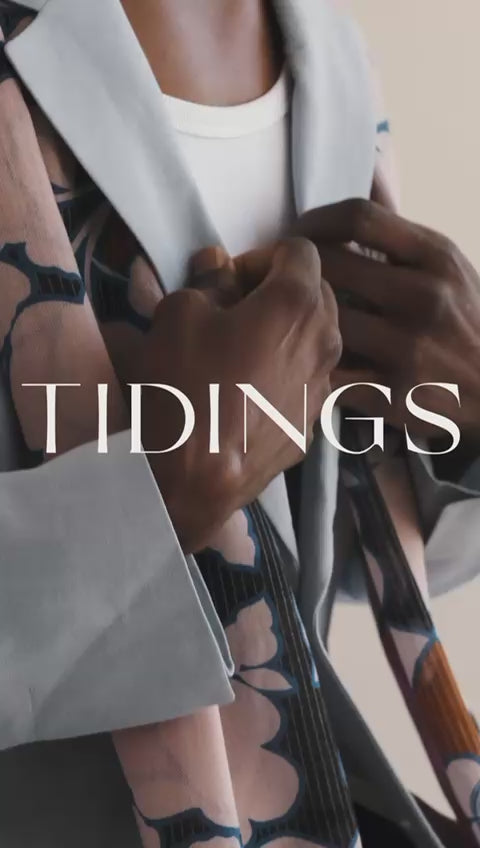 This luxurious scarf features a striking, contemporary floral pattern delicately layered over a subtle pinstripe, creating a unique and sophisticated aesthetic.